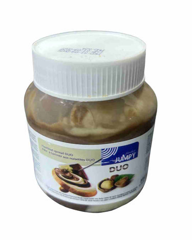 Jumpy Duo Hazelnut Spread 350g is a crunchy, tasty snack enjoyed by kids and adults, perfect for sharing and snacking.