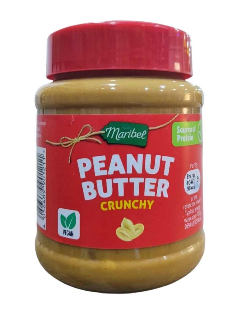 Maribel Peanut Butter Crunchy 340g delivers roasted peanut flavor with crunchy peanut pieces.