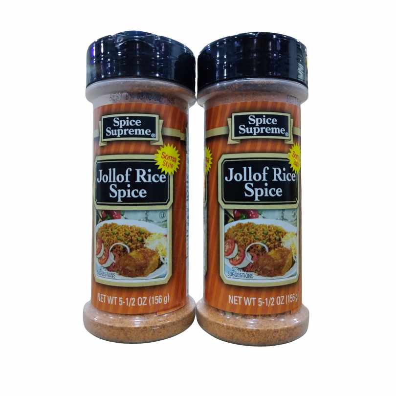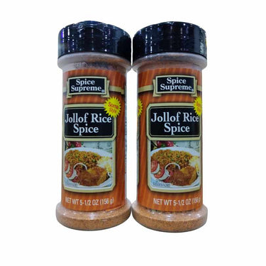 Spice Supreme Jollof Rice Spice (156g) is a pre-mixed seasoning blend designed to add authentic, rich flavor and color to West African Jollof Rice, featuring ingredients like paprika, onion, garlic, and thyme for a savory taste, making cooking easier and ensuring consistent results for various Jollof styles.