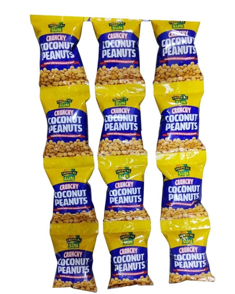 Tropical Sun Crunchy Coconut Peanut 50g combines roasted peanuts with sweet coconut coating for a crunchy, tasty snack.